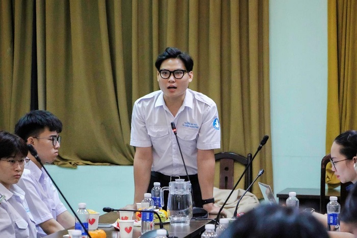 Cựu sinh viên Hoàng Kim Long, lớp 15DTD tham gia phát biểu tại hội nghị