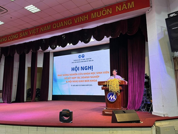 Tối ngày 28/06/2024, tại Hội trường A (cơ sở 385 Tăng Nhơn Phú A, Trường Đại học Tài chính – Marketing) đã diễn ra Hội nghị “Phát động nghiên cứu khoa học sinh viên, sơ kết hợp tác doanh nghiệp và hội nghị giao ban Khoa TĐG-KDBĐS lần 1 năm 2024”.